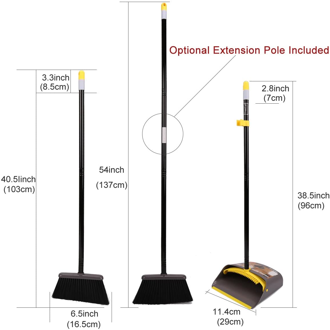- 🍀Broom and dustpan set for home,Broom Measures Over 52″overall tall by 10″ width,dust pan long handled 38.5″ tall, standing dustpan and long handle Broom set offer comfortable sweeping task,No more bend over!