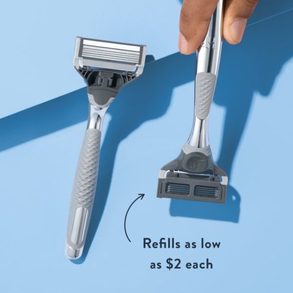 Harry’s razors for men have all the features you need for a close shave. Each razor features a 5 blade razor cartridge engineered at the Harry’s factory in Germany, which has been manufacturing razor blades for men for over 100 years. The Harry’s Chrome Edition handle is crafted from weighty, die-cast metal, and the ergonomic handle sports a sleek chrome finish and a textured grip inspired by classic safety razors. (Fun fact: The technical term is “knurling.”) This Harry’s handle may be the best looking thing in your bathroom (other than you). Harry’s razor blades are sharp and feature a flex hinge for comfortable movement over facial contours, a precision trimmer to help you shape facial hair and remove stubble in hard-to-reach places, and a lubricating strip. Guys who shave with these sharp Harry’s blades at least four times per week say their eighth shave is as smooth as their first. This men’s razor set also includes a travel blade cover to help protect your blades when you’re on the go. All Harry’s blade refills fit all Harry’s razor handles, so you can choose the color that speaks to you. Quality blades, convenient features, fair prices, and a simple approach to design all make Harry’s razors a little bit different. To make your shaving experience even more comfortable, pair Harry’s razor blades with their shave prep or aftershave products, including Harry’s Shaving Cream, Harry’s Shave Gel, and Harry’s Post-Shave Balm.