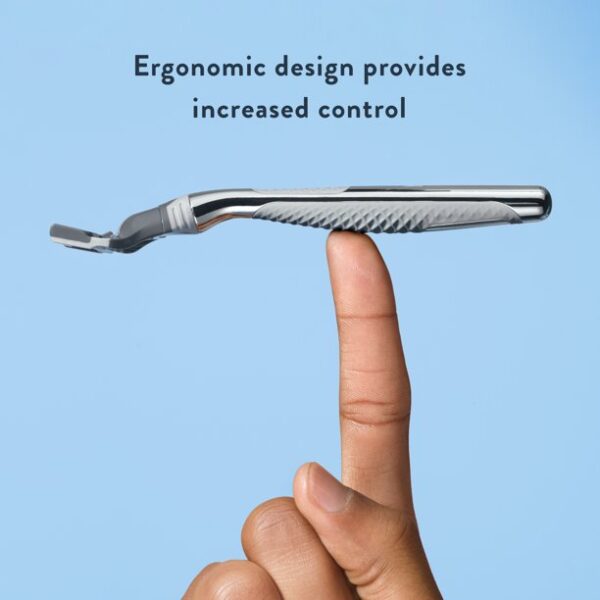 The Harry’s men’s razor handle has an ergonomic shape, a textured grip and weighted core for optimal control